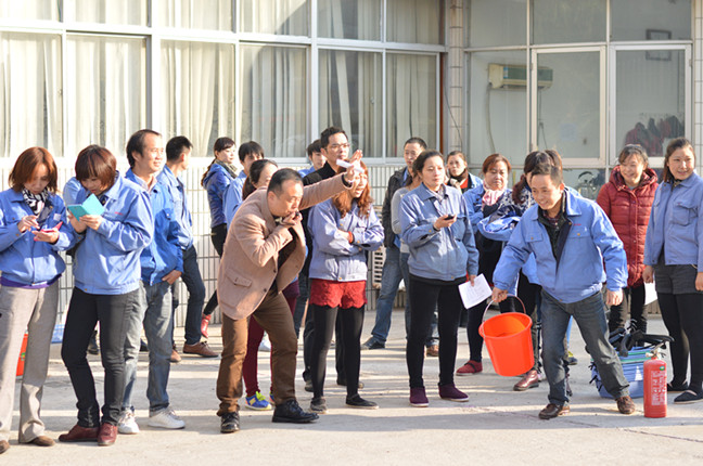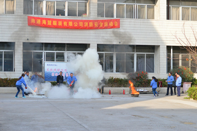 12月6日下午 ,隨著毛明輝副總經理的一聲哨響,一場別開生面的消防運動會在南通海盟服裝有限公司火熱開賽。該運動會是南通海盟服裝有限公司組織的第五屆消防運動會,來自公司的9支代表隊在提水桶、搬運塑料簍及衣架、搬運滅火器、迅速火盆滅火聯手接力賽項目上展開比拼。