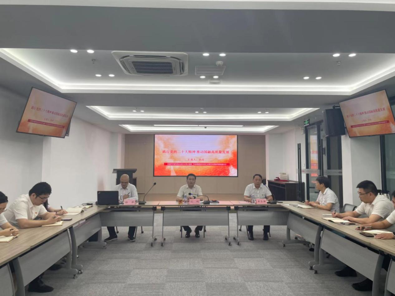 隨后,國融公司黨委委員、副總經理孫濤以《踐行黨的二十大精神 推動國融高質量發展》為題,帶領公司黨員一起學習黨的二十大報告精髓,結合公司實際,從三方面與大家分享自己學習黨的二十大精神的體會與收獲,積極引導黨員干部堅持學習、堅定信心、奮勇前行,攜手共譜國融公司新篇章。